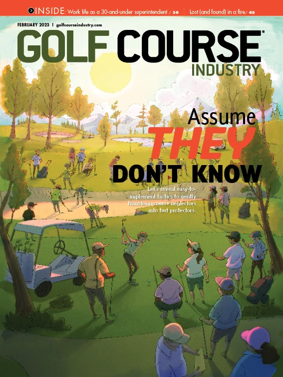 Eight 6- or 12-volt batteries can be charged at the same time on the five-year-old Schumacher DSR ProSeries DSR127 Charging Station (about $800 from Northern Tool), which includes eight 6-foot-long detachable charging cables. Each battery is automatically charged separately using a start and stop button, which adjusts from two to 12 amps output per bank, with a digital display to keep the team informed during the charging process. There is a microprocessor to prevent overcharging, with reverse polarity and short-circuit protection for standard, AGM, deep-cycle and LiFePO4 batteries. The 12-volt batteries are used primarily for 15- and 30-gallon sprayers used for spot spraying chemicals, which last all day on a single charge. Superintendent Kurt Jennings and equipment manager Corby Coggins at the Redstick Golf Club in Vero Beach, Florida, are high tech in everything they do. Rees Jones and Greg Muirhead designed the course.