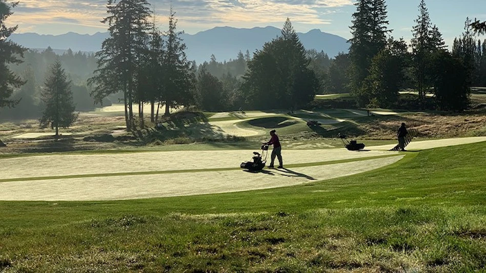 Reehoorn stressed not only the importance of the roller selection, but the importance of training employees to properly roll Aldarra’s bentgrass greens. Poa annua-free bentgrass is uncommon in western Washington. “Training employees to roll, or selection roll, is crucial,” he adds. “Our biggest key is we want dry weather so additional moisture isn’t an issue.”