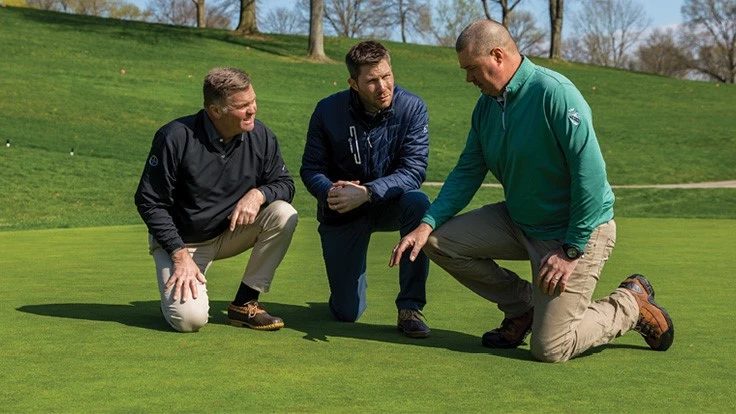 The way Materkowski sees the industry, people are the most important tool for helping a superintendent handle turf stress and disease. His network includes numerous confidants, including Bayer area sales manager Darrin Batisky. Materkowski and Batisky met in 2001 when Batisky accepted a superintendent job at a Pittsburgh-area private club. The relationship has led to Materkowski incorporating versatile products designed to prevent biotic and limit abiotic stress into St. Clair’s program.