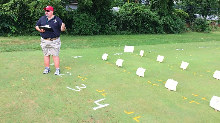 On a perfect mid-August day, we visited Columbus, Ohio, for the Turfgrass Research Field Day presented by The Ohio State University and Ohio Turfgrass Foundation. We weren’t alone. The event attracted more than 250 industry professionals to the OTF Research and Education Facility and university research plots. Ohio Stadium, home of the inaugural College Football Playoff champion Ohio State Buckeyes, lurks in the skyline. GCI, though, isn’t a fan of artificial surfaces and we will never publicly announce an allegiance to any college program.