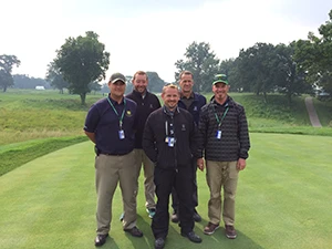 Pictured from left: Tony Gustafson, Jonathan Graham, Alex Stuedemann and Bruce Phillipson of TPC Deere Run, and Australian superintendent Shaun Cross of Byron Bay Golf Club.