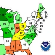 - NCDC's Climate Extremes Index (CEI) <http://www.ncdc.noaa.gov/extremes/cei/index.html> for April-September (the “Warm Season”) was about 35, or 15 points higher than the historical average, making it the fourth highest value since 1910. The CEI measures several types of climate extremes like record or near-record warmth, prolonged drought, flooding events, and frequency and intensity of storms like land-falling hurricanes. Factors contributing to the ranking: a large area of the country experienced high temperatures over an unusually large number of days, several areas received heavy rainfall and others experienced worsening drought. For the year-to-date, extremes measured by the CEI were nearly 10 points higher than the historical average of 20.