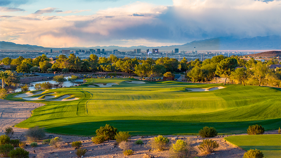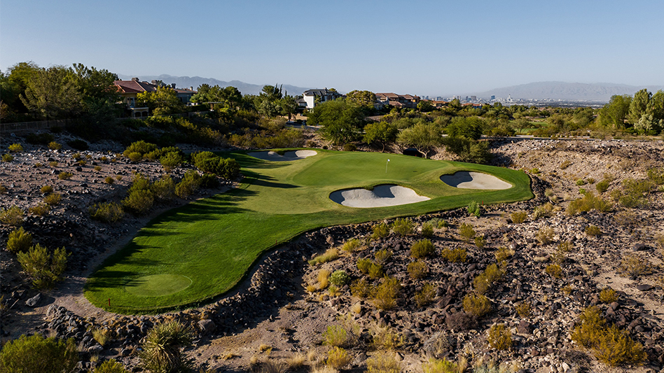 The Henderson course sits high on a hill facing south of the Las Vegas valley, looking down toward the Vegas Strip and creating different hole elevations throughout the course. “Just a beautiful spot,” Symons says. “Just being in Vegas and having a whole valley is tremendous.”