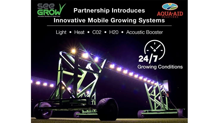 SeeGrow and AQUA-AID Solutions have announced a partnership offering the North American golf markets innovative, mobile, all season, patented LED growing systems. The SeeGrow Lighting Systems utilize LED technology along with a CO2 process to create a healthy microclimate for turfgrass systems throughout the world. Those in the golf industry will have their first look at these innovative systems at the Golf Industry Show with AQUA-AID Solutions in booth #727.