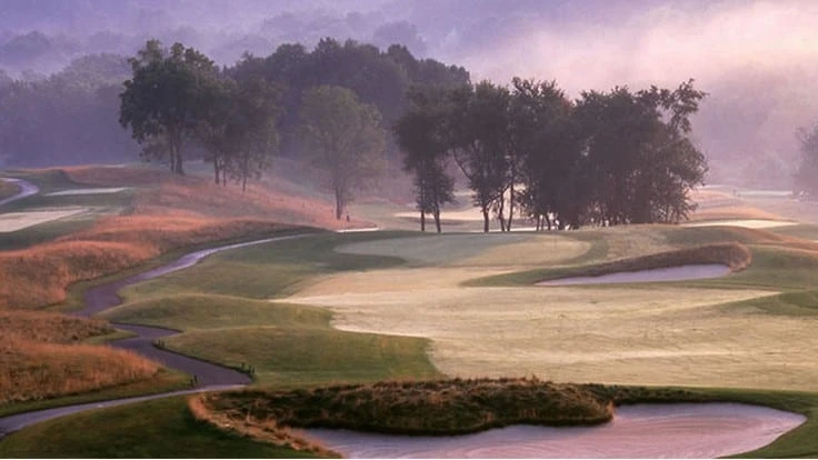 Set in the lush rolling hills of New Jersey’s Warren County, the links-style 18-hole course plays to a par of 71. Each hole pays homage to a different architect, including the straight-as-an-arrow par 5 1st hole inspired by Old Tom Morris, the A.W. Tillinghast-inspired dolomite mounds on the par-4 7th hole, the diagonal green and flashy greenside bunkers on the par-5 13th hole that are classic Alister Mackenzie design elements, the Donald Ross-style ridge that separates the green into left and right sections on the 15th hole, and the 80-yard long runway tees on the Robert Trent Jones Sr.-inspired 18th hole.