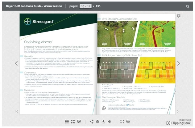 The Bayer Golf Solutions Guide is available for direct download, as well as an easy-to-use online flipbook format. The digital-first guide is part of Bayer’s commitment to reducing the volume of printed materials, one of many ways Bayer continually strengthens its positive impact on society and the environment.