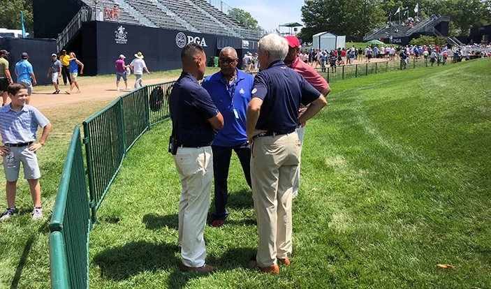 GCI’s Guy Cipriano spent part of championship week with the Bellerive team and volunteers. He even caught a glimpse of director of agronomy and grounds Carlos Arraya welcoming a special visitor known for backflips to the club.