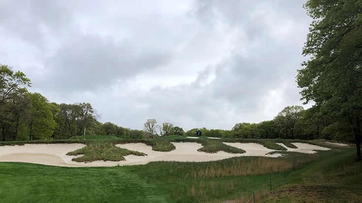 Earlier in the day, a volunteer crew raked the bunkers, smoothing animal prints – birds, foxes, chipmunks and raccoons call the Black Course home – and the few remnants of Monday’s rain-shortened practice rounds. Of the 78 bunkers, around 30 will receive little or no use from the pros this week. When daily play returns to the Black Course next weekend, every bunker will see play. “There are bunkers out there these pros won’t touch,” Wilson says. “But our daily fee golfers make generous use out of all of them.”