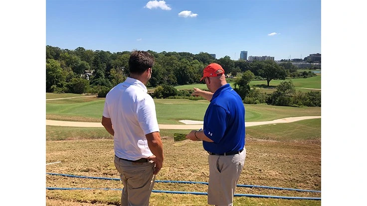 (Pictured superintendent Kyle Macdonald and architect Bobby Cupp describe a hole at the reversible Bobby Jones Golf Course)