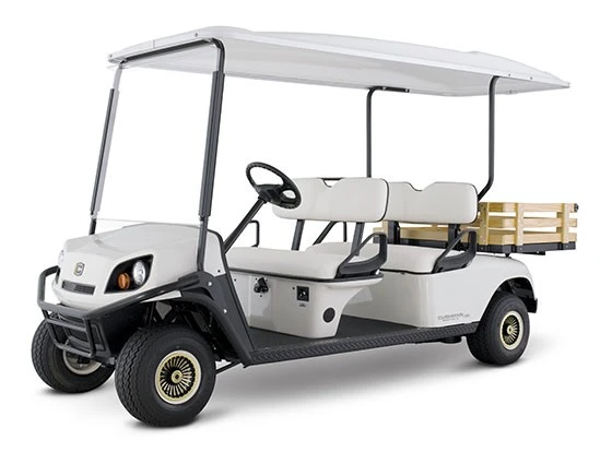 The Cushman Shuttle 4 features seating for up to four people, with a stake-side cargo bed to carry equipment, luggage or personal belongings. The Shuttle 6 features seating for up to six people, and the Shuttle 8 can carry up to eight.
