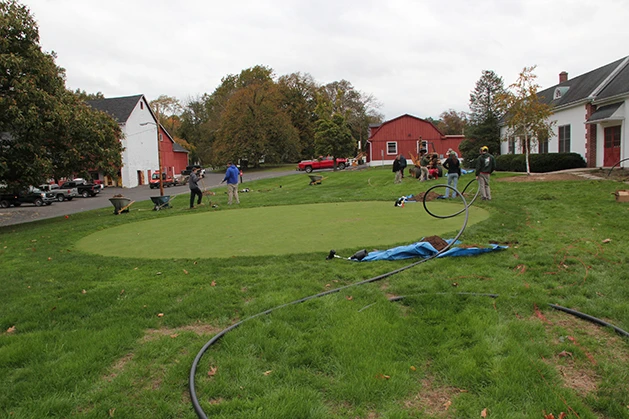 Students in Delaware Valley’s turf management program received an opportunity Oct. 26 to install a new irrigation system on the university’s putting green while interacting with industry professionals.