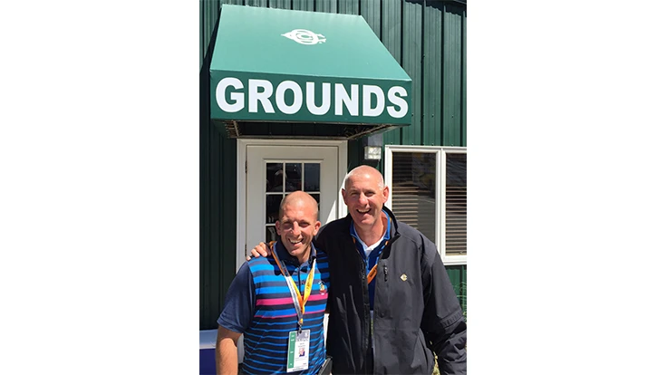 (Pictured: David Delsandro, left, will replace John Zimmers as Oakmont Country Club superintendent.)