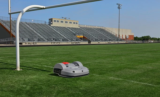 The TM-2000 can handle up to five acres of turf efficiently and quietly while also finely mulching clippings to promote turf health. Since the unit can be remotely commanded while monitoring performance via a web platform and mobile app, sports turf managers can put their time and labor toward issues requiring direct attention. It can also be scheduled to operate around field usage and watering cycles while the emissions-free operation keeps energy costs eight times lower than traditional turf maintenance tools.