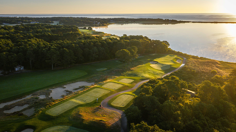 The best example of this dynamic might be the third and fifth holes, which had been separated by dozens of pines that had slowly overtaken a former sand pit. They’re all gone, replaced by 120 yards of flamboyantly contoured, informal bunkering festooned with erosion-controlling, native vegetation. Such artful clearing also means the dramatic, picturesque fourth — a par-3 playing down to the shores of Sengekontacket Pond made famous by the movie “Jaws” — can now be enjoyed by golfers on all three holes.