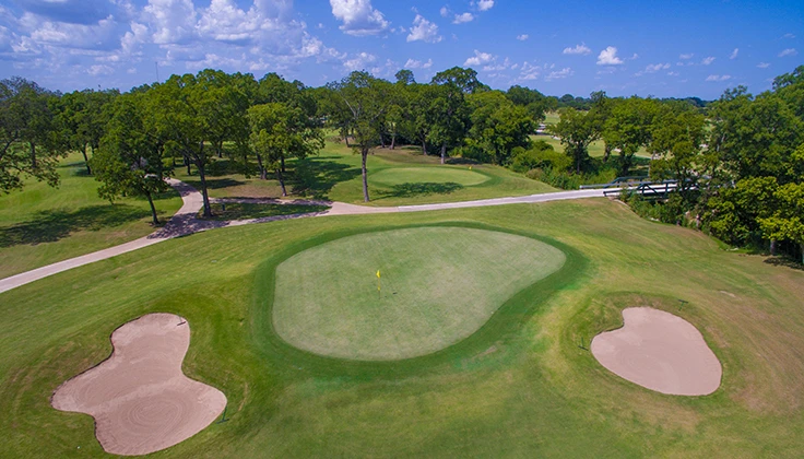 Originally built in 1983, FireLake Golf Course now encompasses 6,335 yards of greens, fairways and rough and features a driving range, chipping and putting greens for golfers of all skill levels. High quality Bermudagrass, mature pecan orchards, a natural creek and numerous lakes line the 18-hole course, shaping the 13 water hazards that classify the grounds. A two-story clubhouse has also been added, offering locker rooms, a fully equipped pro shop, a restaurant, bar and ballroom on the premises.