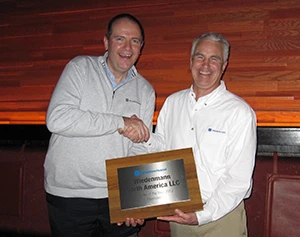 Wiedenmann North America, LLC was honored on November 14, 2013 at the annual awards presentation held in Savannah, Georgia. Wiedenmann North America is the 2012 Importer of the Year for Wiedenmann GmBH. Pictured here are Juergen Wiedenmann, owner of Wiedenmann GmBH and Will Wolverton, General Manager of Wiedenmann North America, LLC.