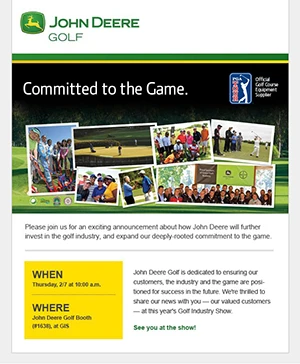 We're told if you swing by the booth (#1638) Wednesday (or connect with any Deere rep in advance), you can get a special invite for the announcement. Bring it back Thursday at 10 a.m. for the big moment and you'll receive some cool swag.