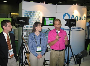 And all that online interaction came together at the GIS TweetUp, held just outside the convention center and led by Pat Jones with his trusty megaphone. We brought the group inside to the Aquatrols booth (#2231) Wednesday for this year’s TweetUp – where superintendents got together offline to talk tweets and enjoy some cold beverages and music.