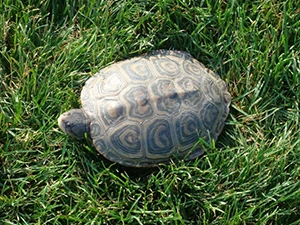 They are pretty to look at and slow moving on land at the Bay Course at New Jersey’s Seaview Resort. What are they? No, not well-heeled vacationing golfers but Northern Diamondback Terrapins.