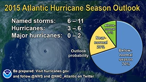 NOAA’s Climate Prediction Center says the 2015 Atlantic hurricane season will likely be below-normal, but that’s no reason to believe coastal areas will have it easy.