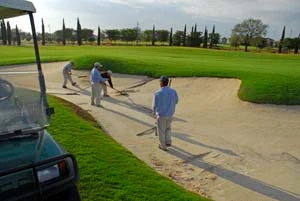 Driving willy-nilly around the golf course not only leaves unsightly tracks in the grass, it can lead to turf damage and the spreading of disease spores. Keep to the path where ever and whenever you're not 'supposed' to be on the turf in the process of maintaining it. i.e. - you don't have to drive up to the green in order to change the cup.