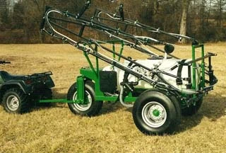 The lightweight ATT 150 has tricycle steering which keeps load off the ATV tow vehicle. It features a 150-gallon low profile poly tank with high flotation 31 x 13.5 terra rib tires. The John Blue ground metering pump system provides a dependable, accurate system for application of chemicals and fertilizer. The system is accurate regardless of ground speed and requires no electronics to work.