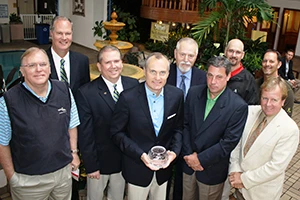 Georgia Lt. Gov. Casey Cagle, with trophy, is pictured with members of the Georgia Golf Environmental Foundation board of trustees, from left, Randy Nichols, CGCS; Mike Crawford, CGCS; Anthony Williams, CGCS; Harold Franklin; Brad Owen; Courtney Young, CGCS; Ralph Kepple, CGCS; and Richard Staughton, CGCS.