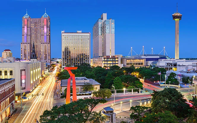 The Alamo, River Walk, barbecue and GCI.