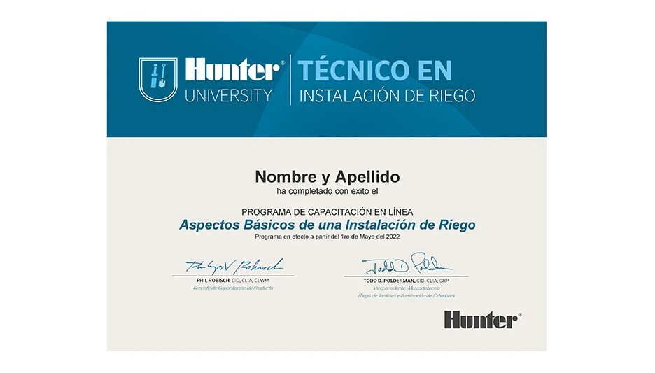 Hunter Industries has launched a Spanish version of its Irrigation Installation Fundamentals Program. The program is offered through Hunter University, the company’s online training portal for professionals.