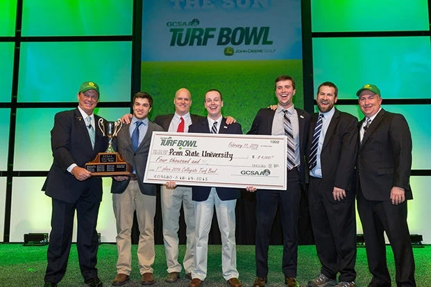 John Deere announced Penn State University as the 2016 winner of the GCSAA Collegiate Turf Bowl. John Deere and the GCSAA awarded the team the traveling trophy and $4,000 first-place prize.