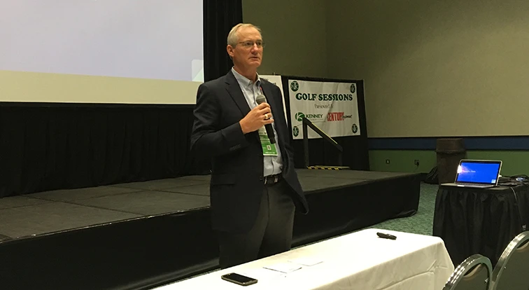 Providing firm conditions can be a challenge for any superintendent, especially one lacking PGA Tour resources, a point Vermeulen emphasized throughout his presentation during the Kentucky Turfgrass Council golf conference at the GIE+EXPO in Louisville. A 10-year PGA Tour employee and former USGA Green Section agronomist, Vermeulen works with superintendents and crews hosting PGA Tour, Champions Tour and Web.com Tour competitions.