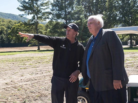 Mickelson spent two days on the property with owner Jim Justice in October. They spent hours touring the land with PMD co-designer Rick Smith, design director Mike Angus and The Greenbrier Resort golf staff. Phil also visited nearby neighborhoods and met with several families that had lost property and homes in the flooding.