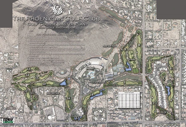 The redesign will create one new and cohesive 18-hole golf course with a natural rhythm and flow in the routing while also matching the reputation and quality of The Phoenician. Existing fairway corridors will be used in the rerouting of the golf course, but no hole will go untouched. The redesigned and rerouted course will play to a par of 71 and will offer five sets of player-friendly tees ranging from 4,418 yards from the forward tees to 6,501 yards from the championship tees. The new course will feature consistent bunker styling while the overall theme of the landscape design will showcase the unique beauty of Arizona’s Sonoran Desert.