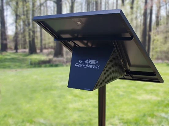 PondHawk (patented) is the first fully integrated, solar-powered pond aeration system that delivers algae eliminating bubbles to any pond anywhere without the expense of power delivery costs, electricity and peak demand charges. PondHawk’s unique stealth and quiet design will not obstruct the beauty of the property or negatively impact the game.