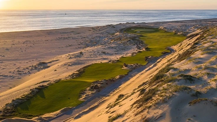 Inspired by the native terrain and featuring numerous panoramic views, Rancho San Lucas Golf Club is a 7,210-yard, par-72, championship-caliber course backdropped by the rolling waves of the Pacific Ocean. Spanning three different ecosystems, the golf course meanders through a thick cactus forest creased by winding arroyos before descending to enormous windswept dunes. The layout features five holes on the beach, notably the par-3 third, which parallels the sea and has views of breaching whales during the winter months.