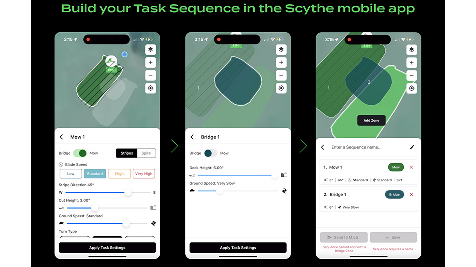 “Task Sequences marks an exciting evolution in how mowing crews deploy robotic mowing in the field,” Scythe senior director of customer success Michael Mayberry said. “By automating what was previously a manual step, this feature allows landscape contractors to accomplish more with less disruption, keeping both people and machines focused on delivering excellent results.”