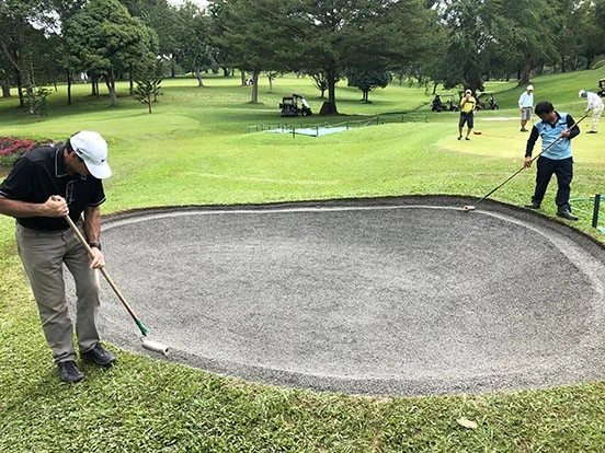 Five bunkers have been built under the supervision of EcoBunker's global installation specialist, Llewelyn Matthews on the short par-3 17 hole of the Bukit course, which was the only hole on the course not to be included in a renovation completed in 2017. After the success of this trial work, the club intends to move forward with a similar treatment of all 80 bunkers on its Island course.