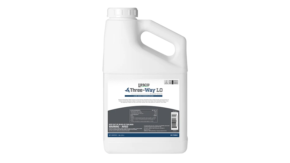 Three-Way LO can be used on residential and commercial turf, golf courses, sports fields, sod farms, rights-of-ways and other non-crop industrial areas. LESCO Three-Way LO is available in multiple sizes ranging from a 1-gallon jug up to a 265-gallon tote on SiteOne.com.