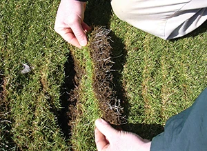 “The roots on the putting green (where GreatGrow was applied) are bright white, and there’s a lot of root hairs, so you can see they’re healthy,” he says.