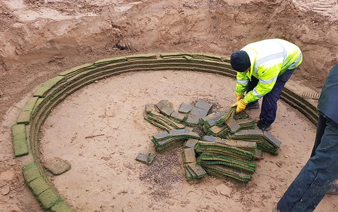 Huw Morgan MG and Llewelyn Matthews, respectively technical manager and construction manager with synthetic revet specialist Ecobunker, went to Tain at the invitation of course manager Iain MacLeod to install the company's product in a new practice bunker, and MacLeod took the opportunity of inviting representative of other local clubs to attend and view the process. Attendees included Chris Haspell, representing the planned Coul Links at Embo, Eoin Riddell of Royal Dornoch, Caroline Munro of Bonar Bridge-Ardgay and Gary Urquhart of Invergordon.