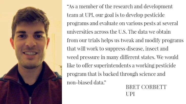 As part of the research and development team at UPI, our goal is to develop pesticide programs and evaluate on various pests at several universities across the U.S. The data we obtain from our trials helps us tweak and modify programs that will work to suppress disease, insect and weed pressure in many different states. We would like to offer superintendents with a working pesticide program that is backed through science and non-biased data.