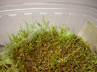 Pythium root rot is harder to recognize. Affected turf may start out as chlorotic and thinned. Root mass is decreased, but may or may not have a rotted appearance. Microscopic examination is often the best way to confirm the presence of Pythium root rot. Photo: D. Settle, Ph.D., Bayer CropScience |