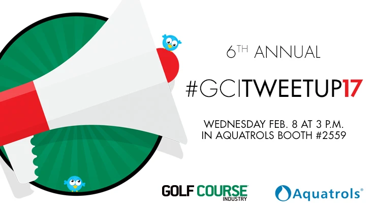 Nominations for the Super Social Media Awards presented by GCI and Aquatrols are open from Monday, Nov. 28 to Saturday, Dec. 31. Winners of the awards, which recognize individuals and organizations who do the best job of using social media to communicate about programs, practices and the industry at large, will be honored during the sixth annual TweetUp at 3 p.m. Wednesday, Feb. 8 at Aquatrols Booth #2559 at the 2017 Golf Industry Show in Orlando. The event, which will include a happy hour with beverages and live music beginning at 2 p.m., can be followed by using #GCITweetUp17 on Twitter.