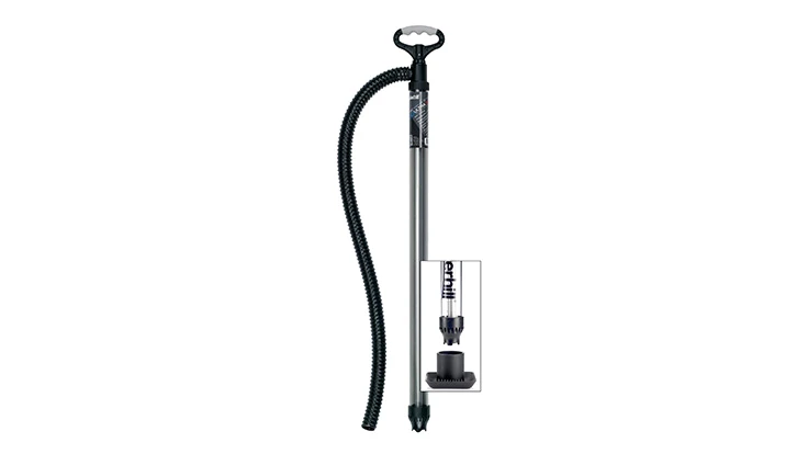 The o-ring and wiper seal, head assembly and intake foot/filter are removable for maintenance and replacement parts are available. An ergonomically-designed handle allows comfortable operation and a smooth, self-priming action draws in an extra high volume of water. UltraMax Plus is constructed with a clear, heavy-duty high strength polycarbonate cylinder body and aluminum grade pump shaft. A sure-fit discharge hose connector stays intact during all clean outs.