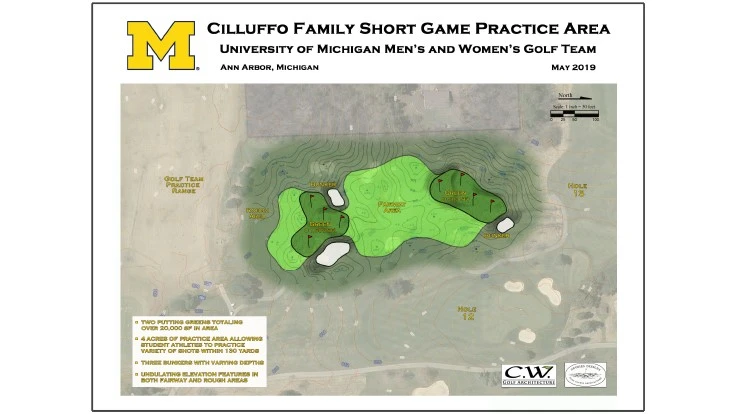 University of Michigan golf courses director Corbin Todd announced architects Chris Wilczynski and Mike DeVries have begun construction on the Cilluffo Family Short Game Practice Area — a five-acre short game area that will help hone the games of some of the nation’s best collegiate players.