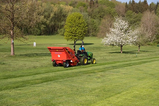 The SUPER 1300 S is an ideal solution for efficiently collecting grass clippings, leaves, and other debris on athletic fields, golf courses, and other turf surfaces. The SUPER 1300 S is equipped with double sweeping rotors. Each sweeping rotor has four sweeping rails which ensure great results while completely filling the 1300 S during backward maneuvers collection container.