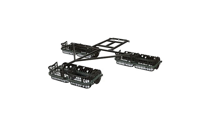The bearing-free Eagle Light ($1,999.99) is 9 feet wide and holds 1,800 balls. It comes complete with a push bar and mounting bracket, 1 ¼-inch powder coated steel framework, plastic baskets, nylon discs, solid steel posts that help maintain level basket heights, and adjustable axle brackets. Optional durable, white nylon discs are ideal for ranges using soft-covered balls, as they will not scuff the finish off the balls. Other upgrade options include a five gang that’s 15 feet wide and holds 3,000 balls, as well as a front wheel package for more maneuverability.