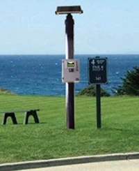 Wireless, solar-powered surveillance monitoring system for golf course blind shots