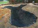 • Composed of three layers: an impervious liner membrane, a unique ring and grid system, and a geotextile that are covered with bunker sand
