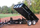 Dimensions are 6 feet, 8 inches wide and 12 feet long Holds 5.15 feet of cubic yards Features power-up and power-down controls Twin 3.5-inch hydraulic cylinders provide added power and stability Open trailers